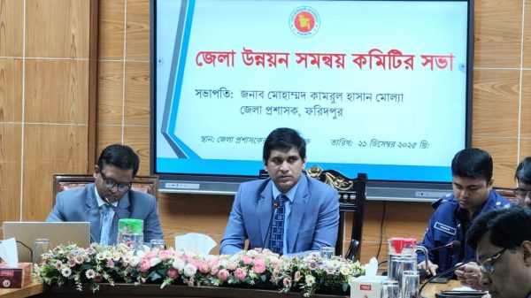ফরিদপুর জেলা প্রশাসনের উদ্যোগে জেলা উন্নয়ন সমন্বয় কমিটির সভা অনুষ্ঠিত হয়েছে। (২১ ডিসেম্বর) সকাল ১০টার ফরিদপুর জেলা প্রশাসনের উদ্যোগে উক্ত সভা অনুষ্ঠিত হয় । ফরিদপুরে জেলা প্রশাসক কামরুল হাসান