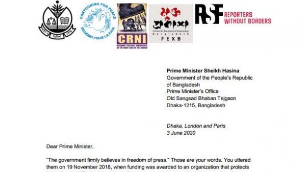 সংবাদমাধ্যমের স্বাধীনতার পক্ষে কাজ করা আন্তর্জাতিক সংগঠন রিপোর্টার্স উইদাউট বর্ডার্স (আরএসএফ)-সহ দেশ-বিদেশের পাঁচটি সংগঠন প্রধানমন্ত্রী শেখ হাসিনাকে একটি খোলা চিঠি লিখেছে। এতে করোনাভাইরাস মহামারির সময় বাংলাদেশে সাংবাদিক সহিংসতার ঘটনায় উদ্বেগ