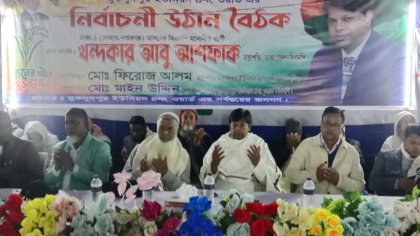 (২৭ ডিসেম্বর) ঢাকা দোহার উপজেলার মুকসুদপুর ইউনিয়নের অন্তর্ভুক্ত ৪ নং ওর্য়াড বিএনপি কর্তৃক আয়োজিত বেগম খালেদা জিয়ার রোগ মুক্তি কামনায় দোয়া ও নির্বাচনী উঠান বৈঠক অনুষ্ঠিত হয়েছে। মুকসুদপুর ইউনিয়ন বিএনপি’র