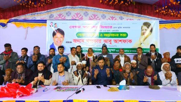 সাবেক প্রধানমন্ত্রী খালেদা জিয়ার রোগমুক্তি কামনায় ঢাকার দোহারে দোয়া মাহফিল ও আলোচনা সভা অনুষ্ঠিত হয়েছে। (২০ ডিসেম্বর) বাদ মাগরিব উপজেলার মাহমুদপুর ইউনিয়নের ৩ ও ৪ নং ওয়ার্ড বিএনপি ও অঙ্গসংগঠন।